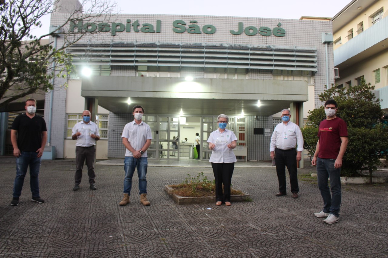 Os profissionais de saúde do HSJ (Hospital São José) receberam, na tarde desta sexta-feira (24/4), 300 protetores faciais para uso no enfrentamento da pandemia da Covid -19. Os equipamentos produzidos pela Unesc, com uso da tecnologia de impressão 3D, já receberam cinco atualizações desde o dia 17 de março, quando o projeto foi idealizado pela reitora da Universidade, Luciane Bisognin Ceretta.