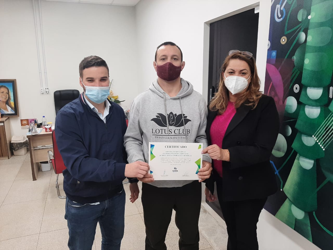 Foi sancionado pela prefeita de Içara, Dalvania Cardoso, na manhã desta quarta-feira, dia 4, a Lei Nº 4599, de julho de 2021, que declara utilidade pública a Associação Educativa e Cultural Pequenos Campeões de Jiu-Jitsu, Lutas Esportivas e Olímpicas. O projeto, localizado em Içara desde 2014, atende de forma gratuita alunos do município encaminhados pelos Centros de Referência em Assistência Social (CRAS). Atualmente são 14 jovens frequentando as aulas de jiu-jitsu e na semana que vem inicia mais uma turma no colégio Dimer Pizzetti.
